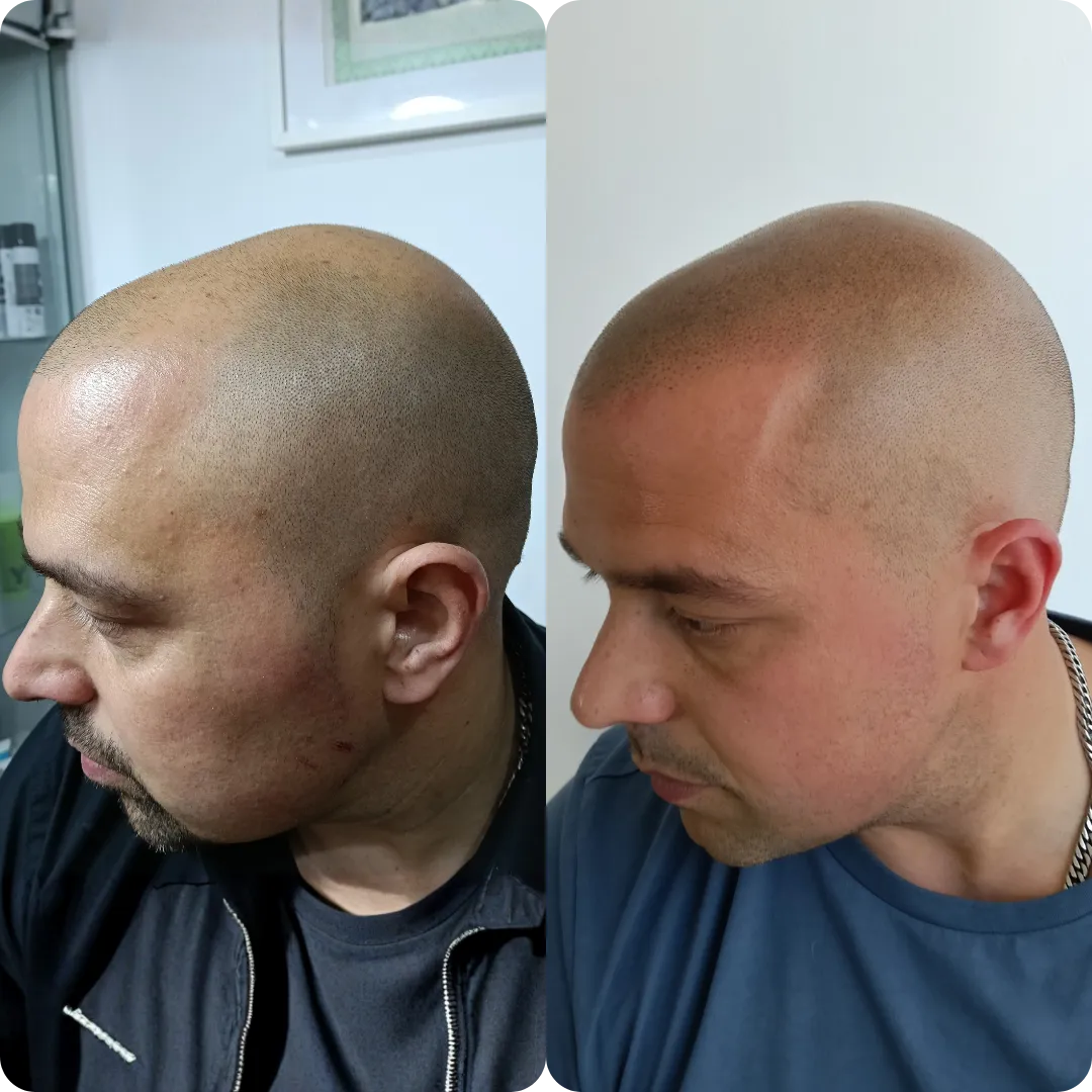 Sabemos que dar este paso genera incertidumbre. Por eso, no te pediremos que confíes a ciegas. Te garantizamos que verás tu futuro look de micropigmentación capilar de forma totalmente realista y adaptada a tus facciones antes de tomar cualquier decisión.